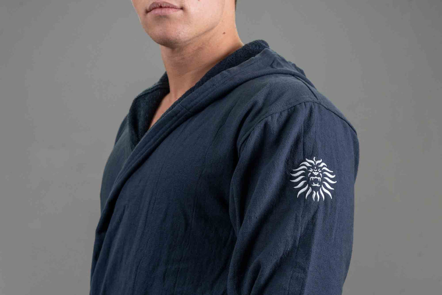 Accappatoio, in Eco spugna, realizzato interamente con l'impiego dei migliori filati naturali. Il tessiuto, in melange di cotone è traspirante, anallergico, termoassorbente e termoregolatore. Occupa poco spazio ed è particolarmente indicato per chi pratica sport o è spesso in viaggio. La fibra naturale al 100% è stata lavorata prestando particolare attenzione al risparmio energetico e alla sostenibilità ambientale in tutte le fasi di lavorazione: dalla produzione alla tintura. L'Eco spugna conferisce al prodotto una delicatezza e morbidezza percepibili al tatto. Inoltre la sua idrofilia migliora ad ogni lavaggio e non indurisce nel tempo. Pesa solo 300 gr, e il marchio Il Moro di Venezia, ricamato a contrasto sulla spalla sinistra, impreziosisce un capo già perfetto e confezionato in ogni dettaglio.